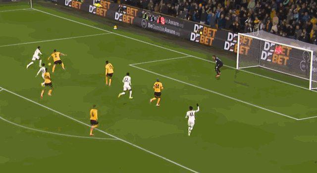 傷停補(bǔ)時(shí)階段,狼隊(duì)在禁區(qū)內(nèi)制造混亂,無人盯防的沃爾費(fèi)挑射將球打進(jìn)。狼隊(duì)3比4再追一球。
